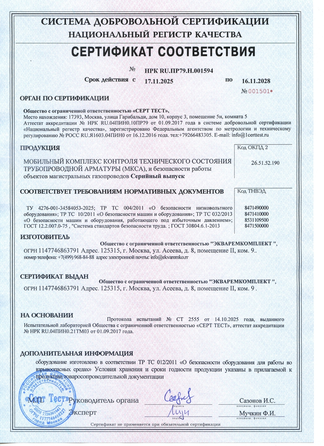 сертфикат соответствия ООО "ЭКВАРЕМКОМПЛЕКТ"